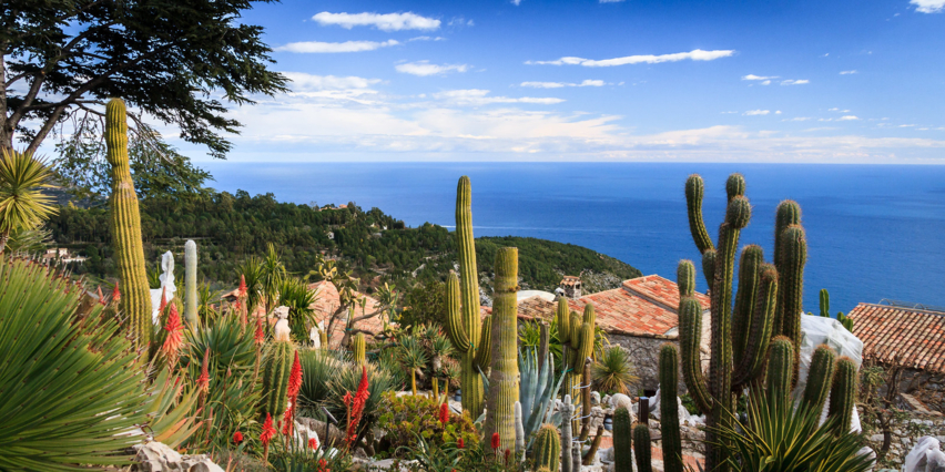 Éze, a Côte d’Azur-ön Monaco és Nizza között elhelyezkedő, kétezres lélekszámú kis falu két látványossággal is büszkélkedhet. A Fragonard parfümgyár és bemutatóterem mellett a bámulatos fekvéssel és kilátással rendelkező kaktusz kert a fő turistacsalogató attrakció. A középkori várrom köré 1949-ben alakították ki a fantasztikus kertet. Már a parkolóban is csodálatos növényekkel találkozhatunk. A hangulatos utcácskákon felfelé haladva, fel sem tűnik, hogy mekkora szintkülönbséget teszünk meg. A növényeket és a hegytetőt elérve boldogan állapíthatjuk meg, ez a látvány minden fáradtságot megért.